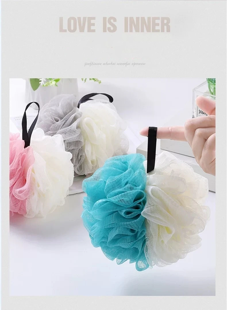 3 PCS Large Bi-Colour Shower Balls Colourful PE Soft Frosted Bubble Bath Flower (Colour Random)
