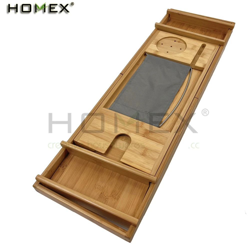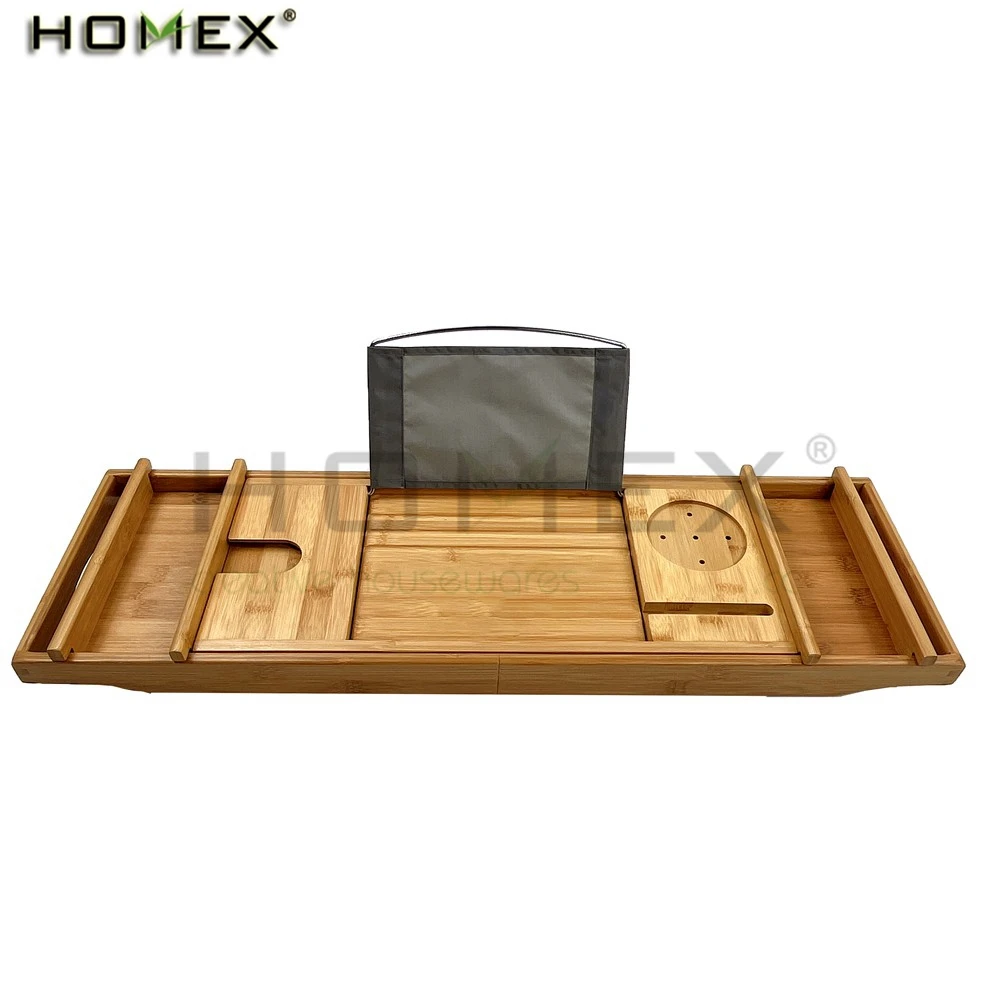 Bamboo Bathtub Caddy Adjustable Organizer Tray for Bathroom Bath Caddy/Homex_FSC/BSCI Factory
