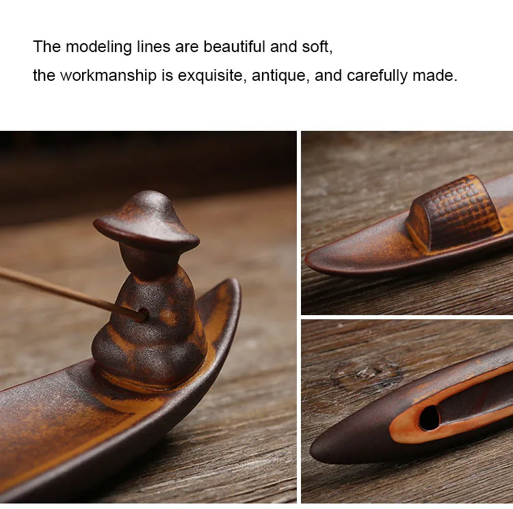 Chinese style retro fishing line incense burner, home decoration with a flat boat lying incense diffuser incense pedestal