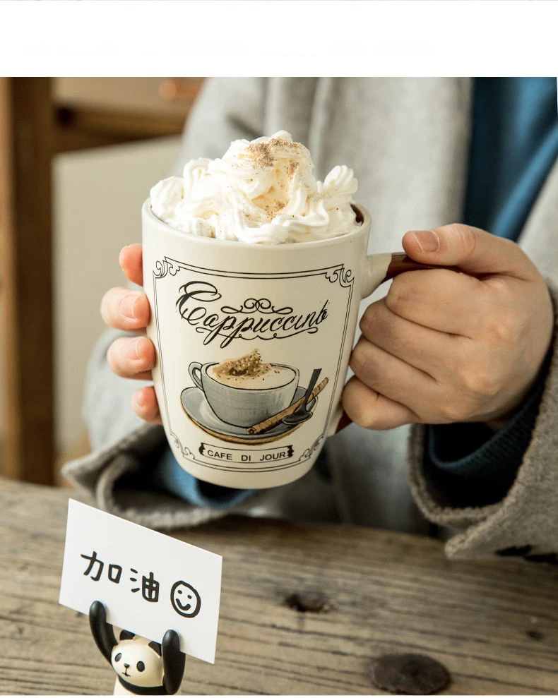 European Light Luxury Ceramic Coffee Cups High Value Vintage Large Capacity Latte Mug With Lid Spoon Home Water Cups Drinkware