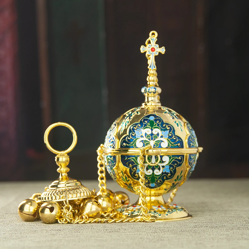 The Orthodox Church Incense Burner features a religious ornament design, adding a touch of elegance to any altar or sanctuary.