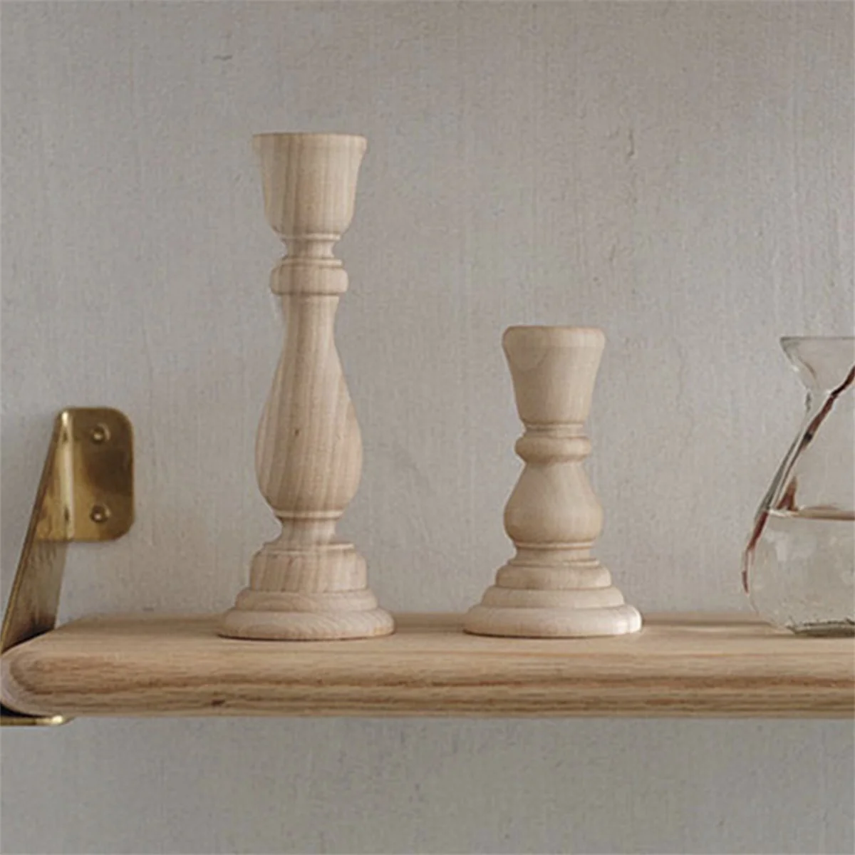 Unfinished Candlesticks Holders Retro Unpainted Wood Classic Craft Candlesticks Holders for Home Wedding Party and DIY Crafts